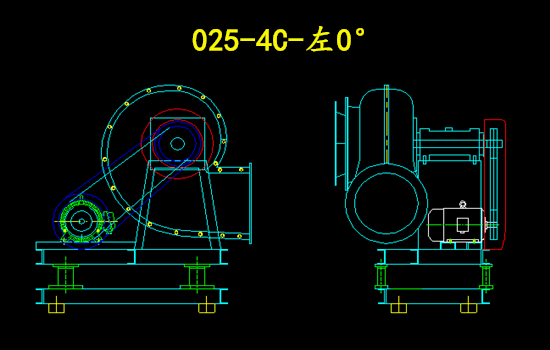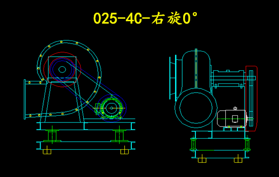 上圖為025-4C-右旋0°的玻璃鋼離心風(fēng)機(jī)圖紙;