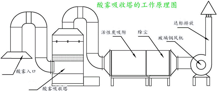 酸霧吸收塔的工作原理及流程(參照上圖):