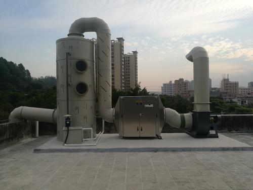 7、經(jīng)由玻璃鋼離心風機送至煙囪管道排至大氣環(huán)境中。